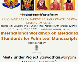 Click link for more information: https://kanchiuniv.ac.in/International-Workshop-on-Metadata-Standards-for-Palm-Leaf-Manuscripts/
