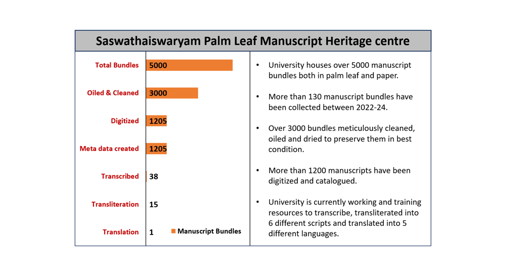 The palm leaf manuscripts being preserved at our university were meticulously collected during the Vijaya yatras of Shri Kanchi Kamakoti Sankaracharya triveni across India