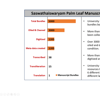 The deciphered manuscript contents are transliterated into six scripts—Grantha, Tamil, Telugu, Malayalam, Kannada, and Roman—ensuring wider accessibility.