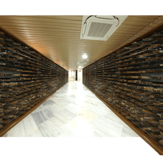 After pre-processing, the manuscripts are stored in a controlled environment. The storage facility features large teak wood racks with glass shelves, designed to provide optimal protection. Over the years, the unit has evolved to meet the highest preservation standards.