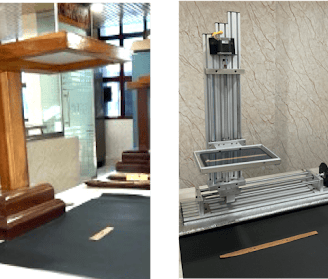Indigenously designed and developed by the Department of Mechanical Engineering, SCSVMV, this patented machine enables uniform imaging of palm leaf manuscripts of various dimensions, ensuring precision and clarity in digital preservation.