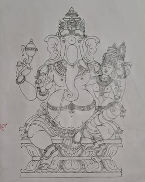 A curated collection of intricate Shilpa sketches crafted by our students, showcasing their understanding of traditional Indian sculpture, architecture, and design principles.